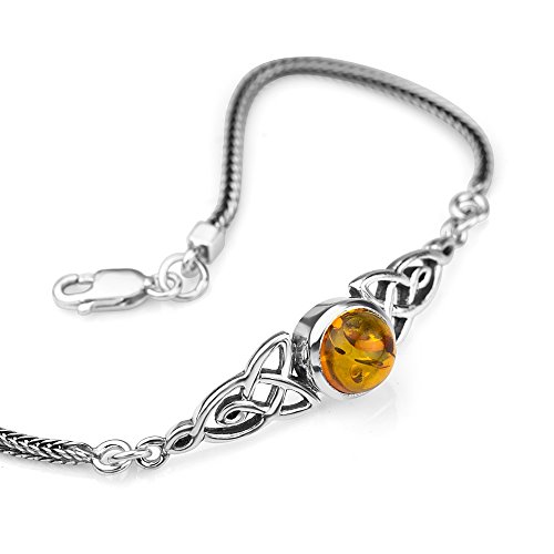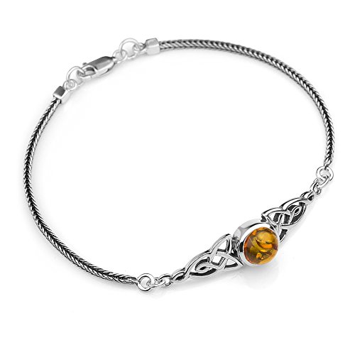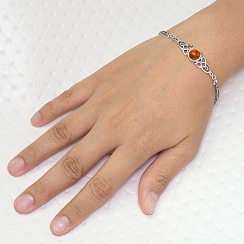 -. Title : 925 Sterling Silver Genuine Gemstone Celtic Trinity Knot Triquetra Triskelion Trikele Bracelet 8"