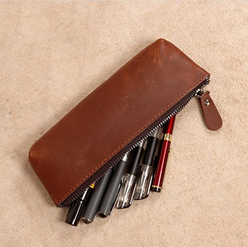 XDOBO Genuine Leather Pencil Pouch Vintage Style Soft Pen Pencil Case for Students Professionals and Artists Office School Gifts Multiple Purpose
