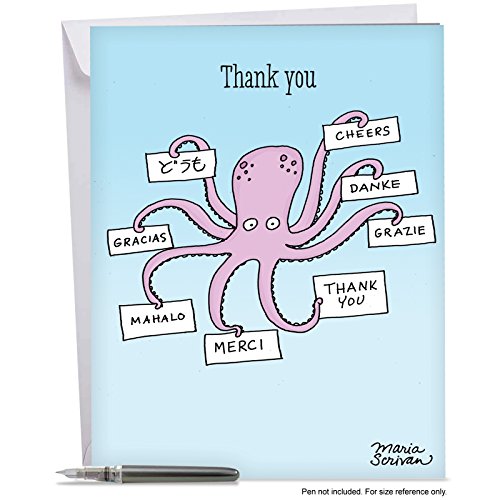 J4013TYG Jumbo Funny Thank You Card: Octopus Thank You With Envelope (Extra Large Version: 8.5'' x 11'')