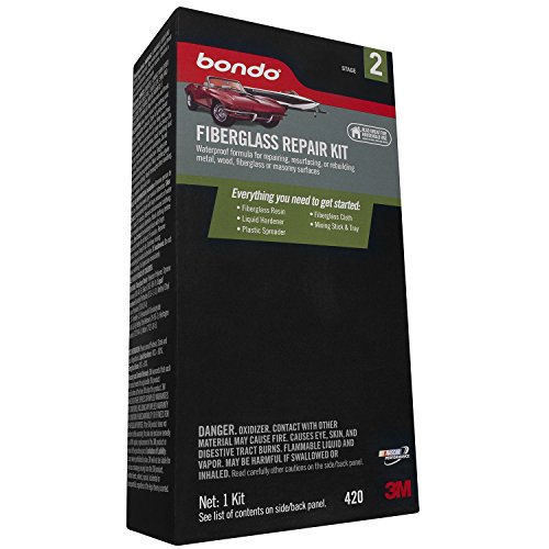 Bondo Fiberglass Repair Kits have everything needed for the Do-It-Yourselfer, including easy How-To directions, Fiberglass Resin, Liquid Hardener, Plastic Spreader, Fiberglass Cloth, Mixing Stick and Mixing Tray.Feature