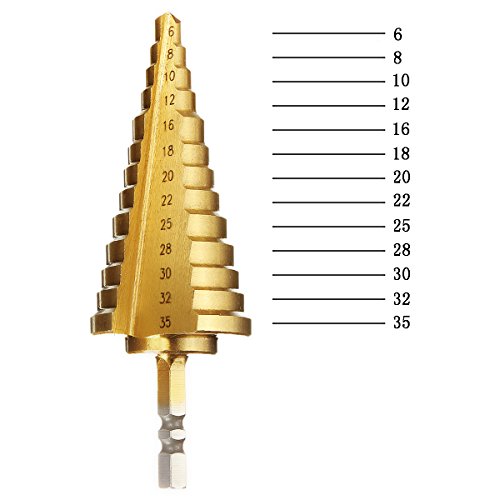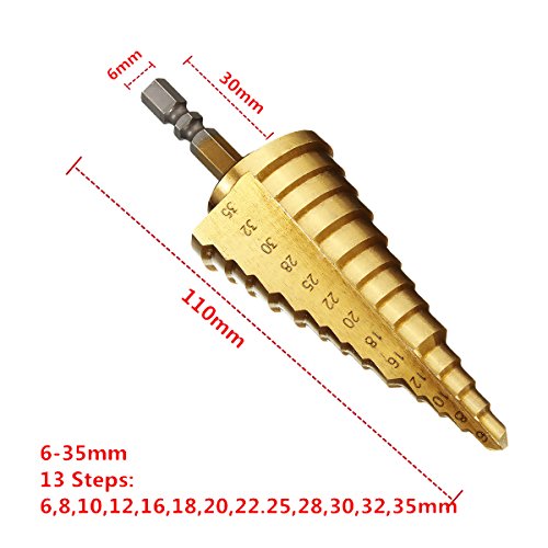 DRILLPRO Titanium Step Drill Bit High Speed Steel 13 Steps Hex Shank 6-35MM