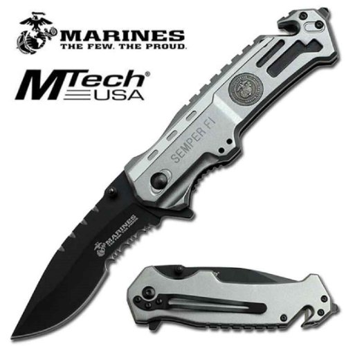 SALE! US MARINE CORPS USMC ELITE "SEMPER FI" TACTICAL RESCUE FOLDING KNIFE - SILVER w/ DROP POINT BLADE