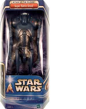 -. Binding : Toy -. Brand : Star Wars -. EAN : 0076930325001 -. Feature : Star Wars Attack of the Clones Super Battle Droid 12 inches tall Action Figure / 1/6 scale Deluxe Edition Fully Poseable Action Figure. / Made by Hasbro in 2002 and long out of production. -. IsAdultProduct : 0 -. Label : Hasbro -. Manufacturer : Hasbro -. Model : C023E/22071 -. MPN : na -. PackageQuantity : 1 -. PartNumber : na -. ProductGroup : Toy -. ProductTypeName : TOYS_AND_GAMES -. Publisher : Hasbro -. Studio : Hasbro -. Title : Star Wars Attack of the Clones Super Battle Droid Boxed Figure -. UPC : 689960237987