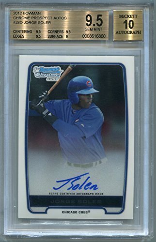 Jorge Soler Rookie Chicago Cubs Certified Authentic Autograph - 2012 Bowman Chrome Prospect BGS 9.5 GEM MT (Autographed Baseball Cards)