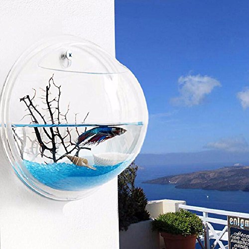 (ZEROYOYO)/Pet Supplies/Houses Habitats/DIRECT FROM USA/ZEROYOYO Wall Fish Bowl Aquarium Tank Hanging Mounted Bubble Plant Acrylic Home Mount Pot
