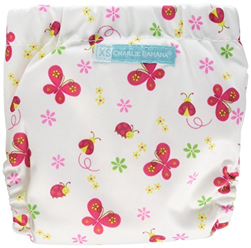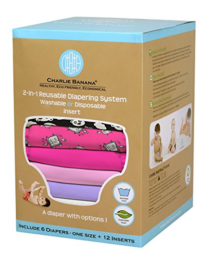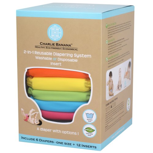 We love cloth diapers for their many benefits and we love Charlie Banana because of its versatility. Charlie Banana diapers are a "2-in-1" reusable diaper system that is made of a fabulously colored PUL (polyurethane laminate) outer waterproof layer, and an incredibly soft microfleece stay-dry inner layer. Each Charlie Banana cloth diaper comes with two thick microfiber inserts (4-ply) - one is short (approx. 12") and one is long (approx. 13")- one for the day and two for nighttime absorbency. They also have a smart front panel that gives you the option of tucking in a disposable pad for those special occasions or using reusable inserts. Simply stuff one or both inserts into the pocket opening to provide the absorbency your baby needs. With Charlie Banana diapers, you get the best of both diaper worlds. Charlie Banana diapers are very adjustable to allow parents to customize the diaper to their baby's shape. Strategic snaps that are located in the front of the diaper provide a great fit: the upper row of snaps is for fastening the waist, and the lower row of snaps is for fastening the leg, resulting in a gentle but snug fit all around. Inside the diaper, an innovative adjustable elastic in the leg casing allows the diaper to grow in length so it fits from 5 to 10 pounds.Feature