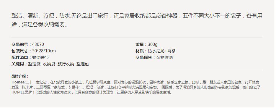 智能家居 家用旅行整理袋五件套装 洗漱化妆品零钱袜子收纳袋