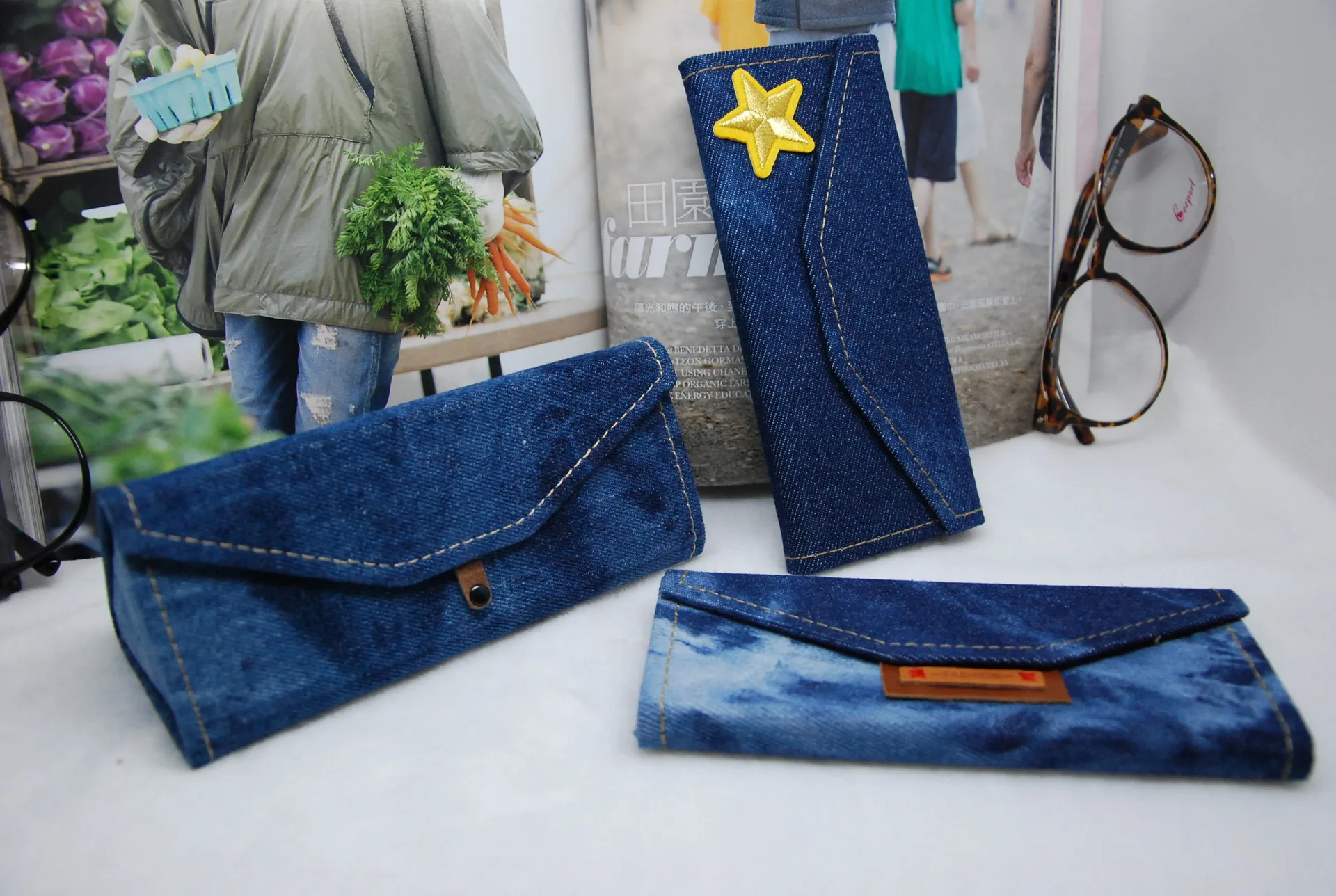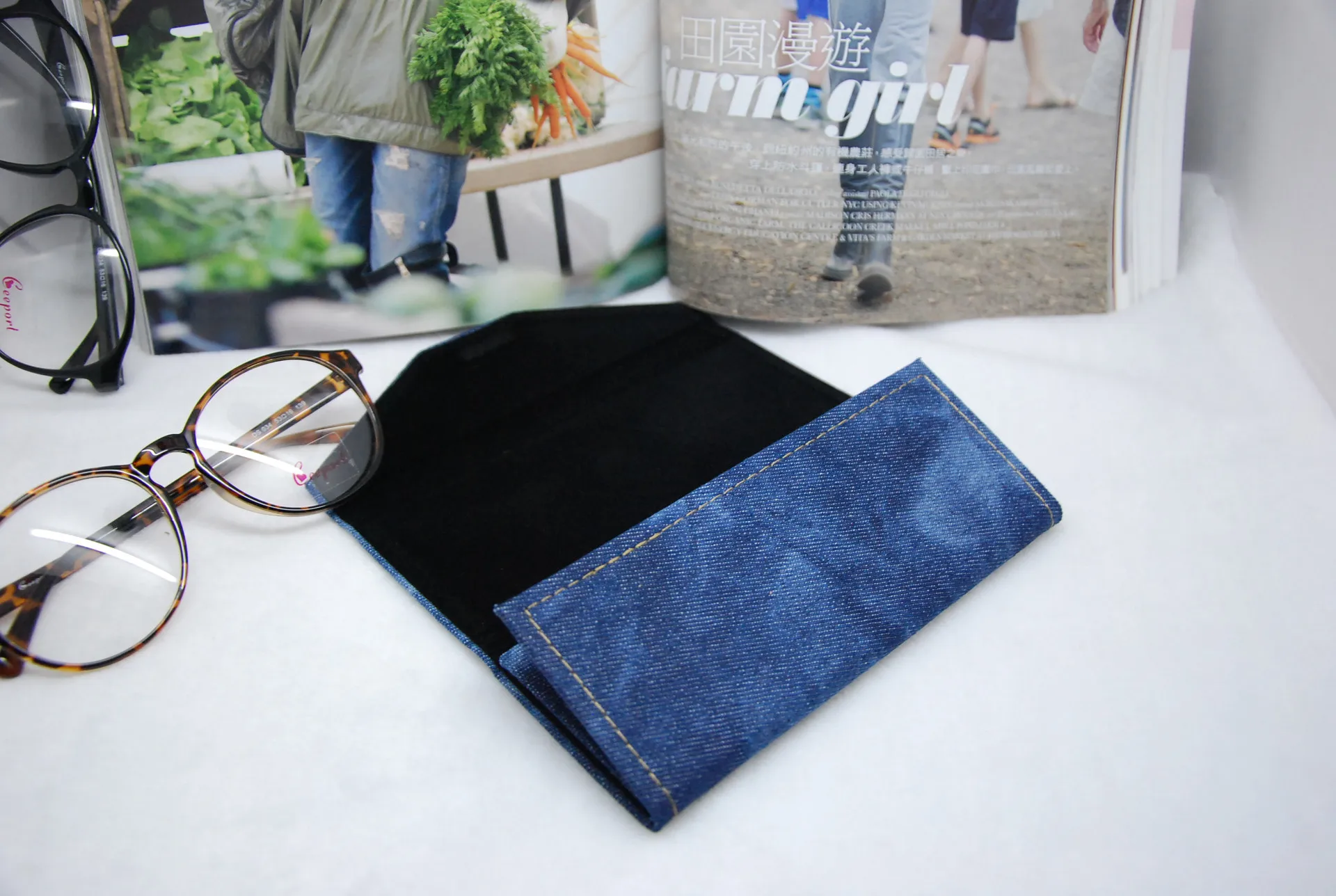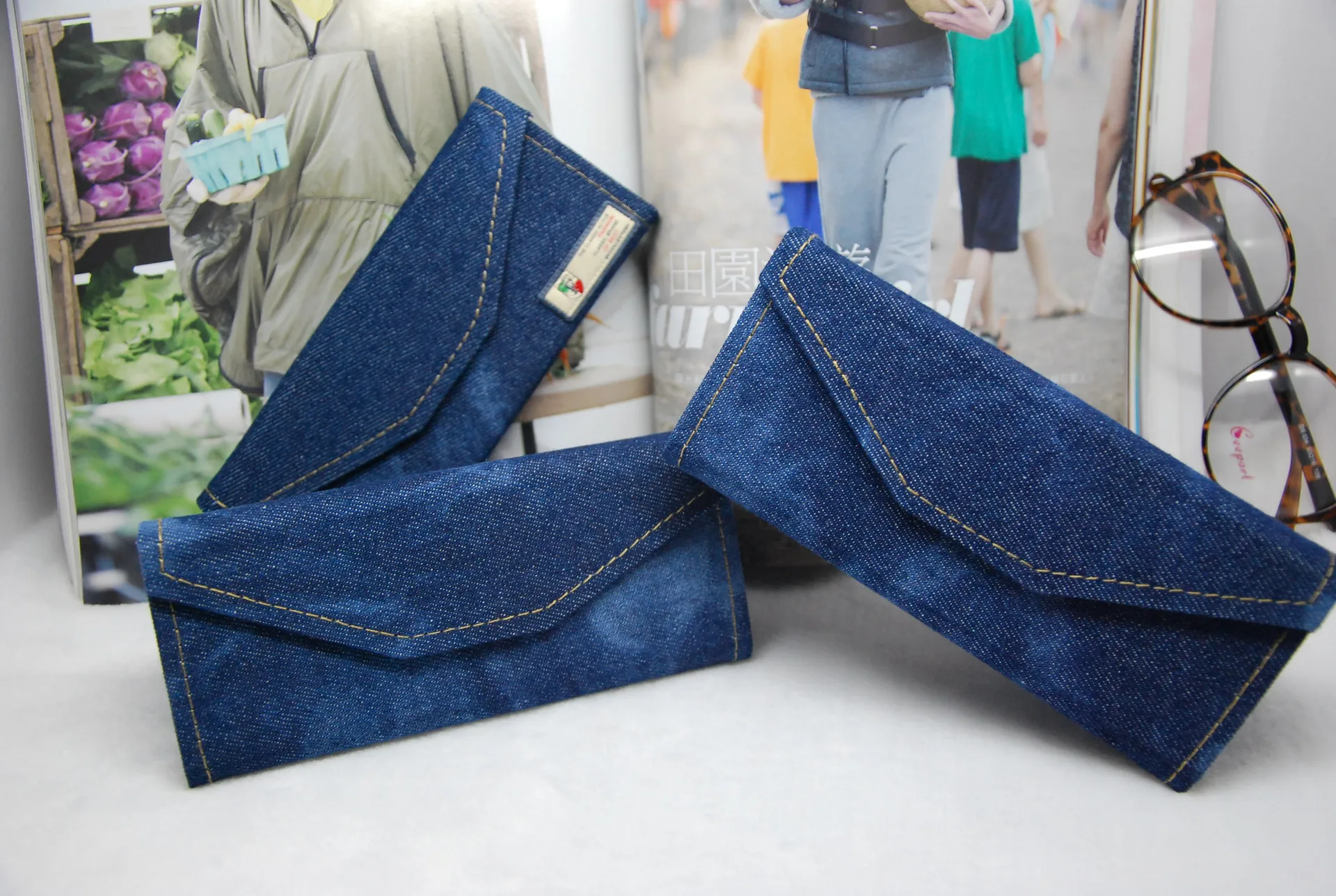 | [해외] Vazrobe 데님 삼각형 접이식 안경 케이스 안경 프레임 접이식 상자 선글라스 대형 스토리지 음영 |