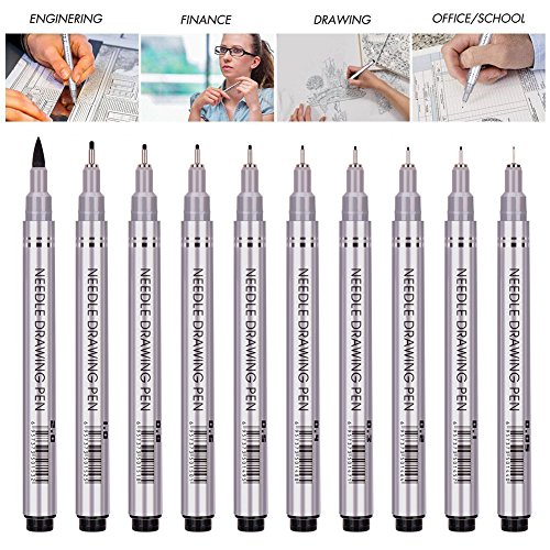 Fine Point Micro-Line Pens, Fineliner, Multiliner, Black Waterproof Archival ink Micro-Pen For Artist Illustration, Office Documents, Scrapbooking, Technical Drawing, Manga,Sketching,Signature, 10/Set
