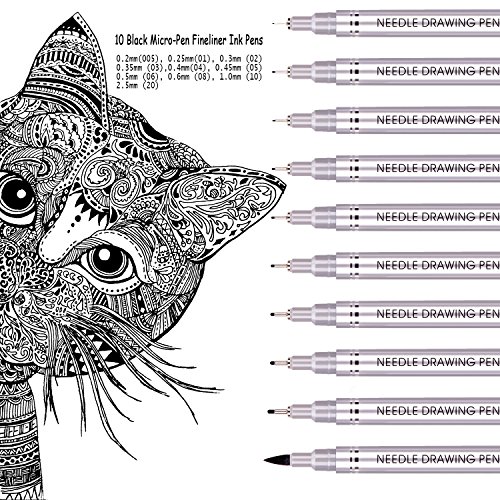 - ✅ 10 Black Micro-Pen Fineliner Ink Pens : 0.2mm (005), 0.25mm (01), 0.3mm (02), 0.35mm (03), 0.4mm(04), 0.45mm (05), 0.5mm (06), 0.6mm (08), 1.0mm (10), 2.5mm (20)