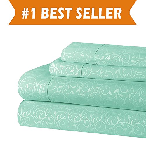 //BEST SELLER// Elegant Comfort Luxurious Silky Soft Coziest 4-Piece Bed Sheet Set Beautiful Design Wrinkle, Mint Green, King