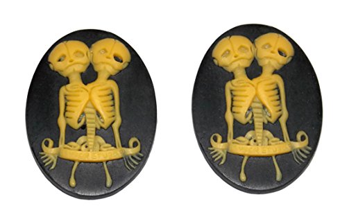 2 Pack of Bright Yellow Conjoined Twin Skeleton / Skull Cameo Resin Cabochon 30mm x 40mm