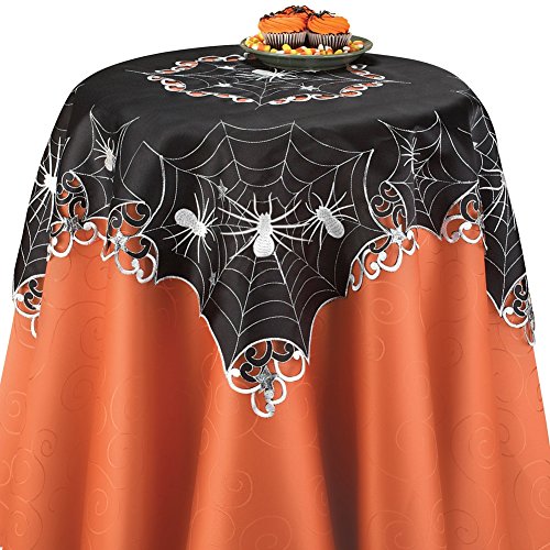 -. Feature : Featuring intricately embroidered silver webs and spiders, these spooky linens are the perfect way to decorate for Halloween / Perfect alone or with a coordinating tablecloth underneath (sold separately), the linens have a black background with scrolling cutwork edges / Machine washable, Polyester; imported / Available either as a Runner (68 3/8"l x 13 1/4"W) or a Square (34"sq) / Shop with confidence! For over 50 years, Collections Etc has been bringing unique, whimsical, inspirational, and home solution products to customers. All Collections Etc products come with a 60 day, easy return policy and 100% satisfaction guarantee