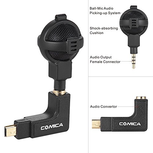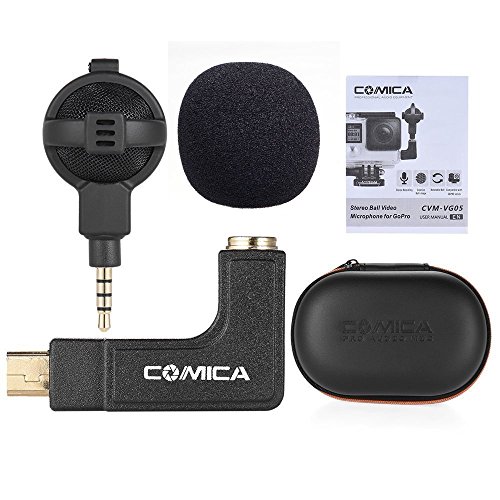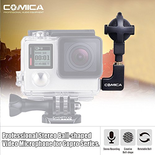 Microphone for GoPro Comica CVM-VG05 Pro Ball-shaped Stereo Mic Audio Sound Recording Windscreen Carrying Case for GoPro Hero 4/3+/3 (Black)