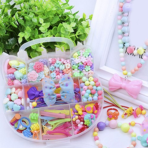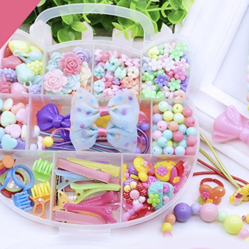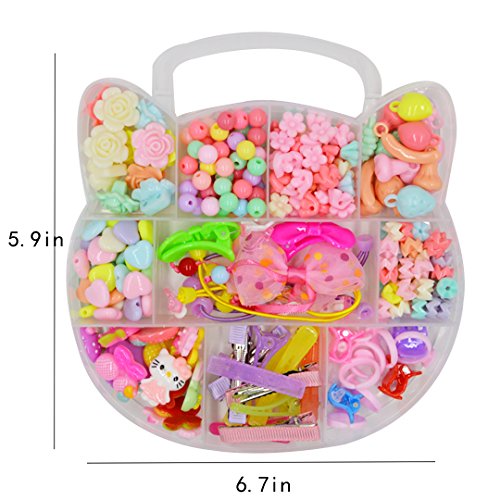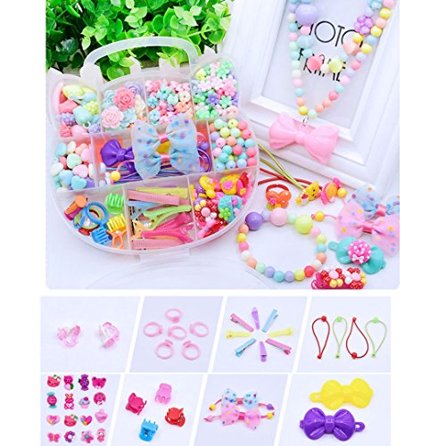 The enviromental and reusable materials, ensures kids' health, easy to apply. 234 grains different color and shape beads, can be used to train kids' color and shape recognition ability. The plastic organizer box, easy to pack everything by themself, improving children's manual dexterity. The cute cartoon accessories, can be designed in many fashion jewelry by kids, maximizes their imagination and creativity. An beautiful and educational gift for boys and girls in birthday, Christmas, New Year, Thanksgiving, ect; works perfect for school art handcraft project, parents-child campaign or child's daily ornaments.