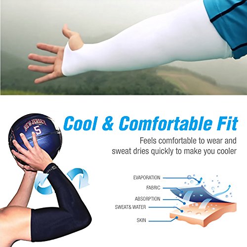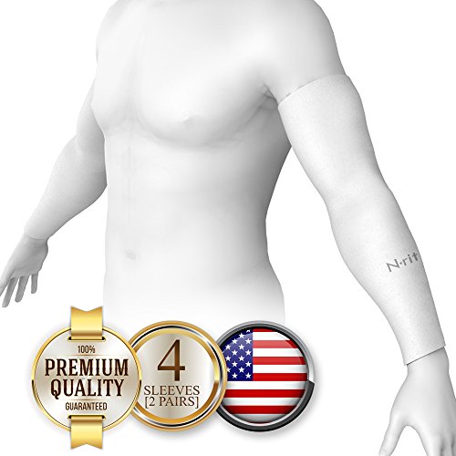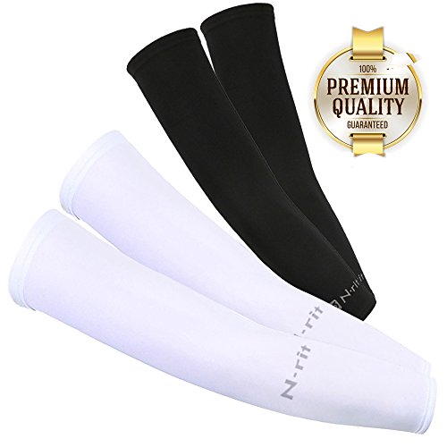N-Rit 2 Pack Coolet Compression Sleeves for the Arm and Elbow. 99% UV Protection and Cooling Ability for Outdoors Use like Running, Basketball, Football, Soccer, Tennis, Cycling. Sleeve [White]