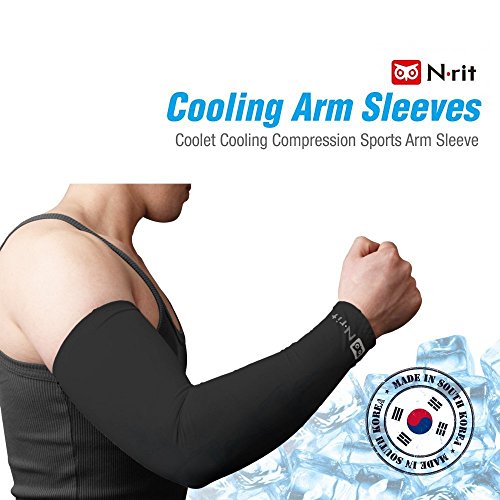 N-Rit Coolet Compression Sleeves for the Arm and Elbow. 99% UV Protection and Cooling Ability for Outdoors Use like Running, Basketball, Football, Soccer, Tennis, Cycling. Sleeve [Black]
