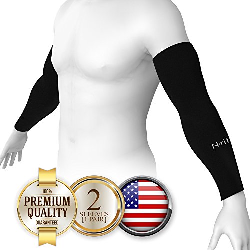 N-Rit Coolet Compression Sleeves for the Arm and Elbow. 99% UV Protection and Cooling Ability for Outdoors Use like Running, Basketball, Football, Soccer, Tennis, Cycling. Sleeve [Black, Fingerless]