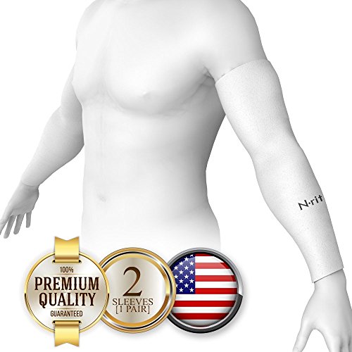 N-Rit Coolet Compression Sleeves for the Arm and Elbow. 99% UV Protection and Cooling Ability for Outdoors Use like Running, Basketball, Football, Soccer, Tennis, Cycling. Sleeve [White]