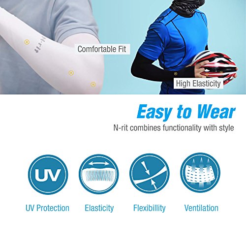 N-Rit Coolet Compression Sleeves for the Arm and Elbow. 99% UV Protection and Cooling Ability for Outdoors Use like Running, Basketball, Football, Soccer, Tennis, Cycling. Sleeve [White, Fingerless]