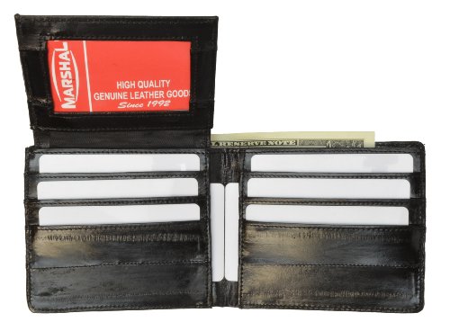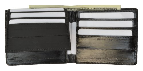 -. Title : 100%Genuine EEl Skin Bi-fold Mens Wallet Black #E316