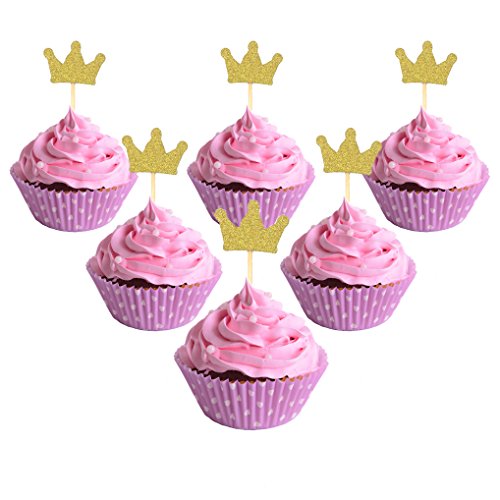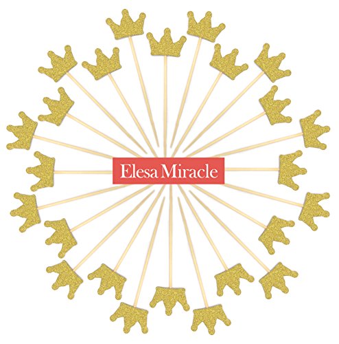 Elesa Miracle 24pc Glitter Gold Crown Cake and Cupcake Topper, Wedding Bridal Shower Birthday Decoration Cake Topper ( 24pc Gold Crown)