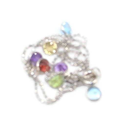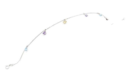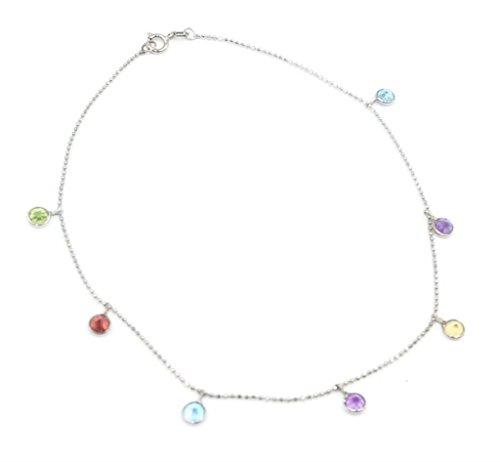 -. Title : Multi-Color Gemstone Charm 10" Anklet,14k White Gold Cable Chain