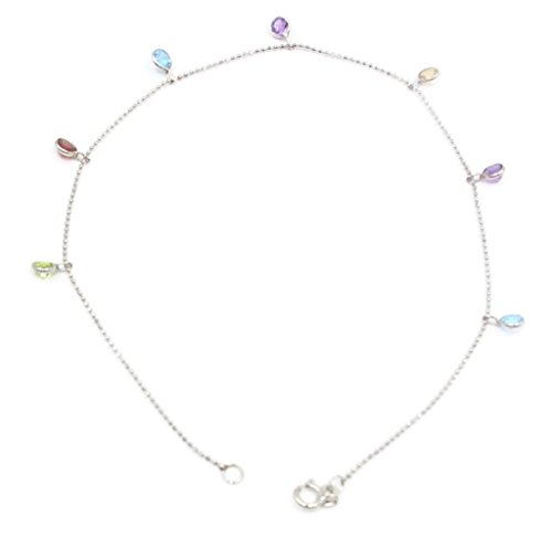 -. Feature : Multi-Color Gemstone Charm 10" Anklet,14k White Gold Cable Chain