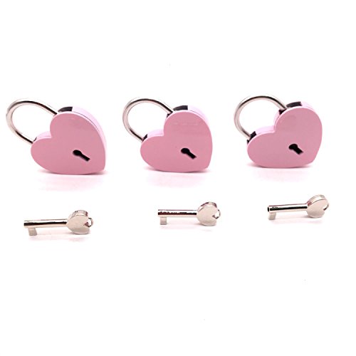 Rugjut 3 Pcs Small Mini Vintage Metal Heart Shaped Padlock Mini Lock Mini Lock with Key Lock for Jewelry Storage Box Diary Book