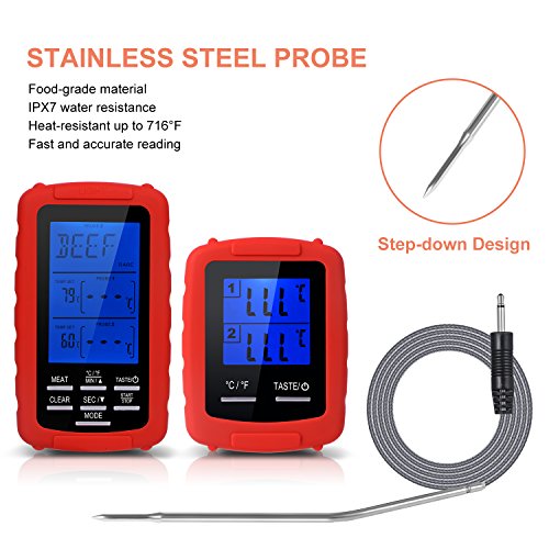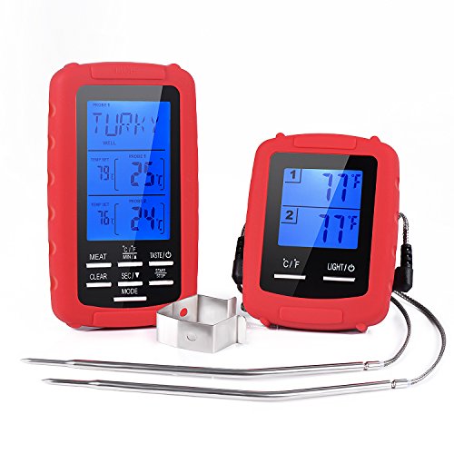 Adoric Digital Wireless Meat Thermometer, Smoker Thermometer, Cooking Thermometer with Dual Stainless Steel Probes, Grill Thermometer for Oven/ Kitchen/ Smoker/ BBQ/ (Bonus Oven Clip)