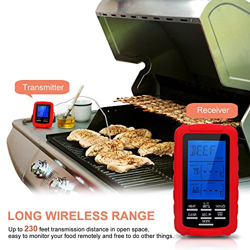 - Up to 230 feet wireless transmission distance in open space, you can monitor your food remotely and receive an alert even if you are away from your food, no need to stay over there all the time.