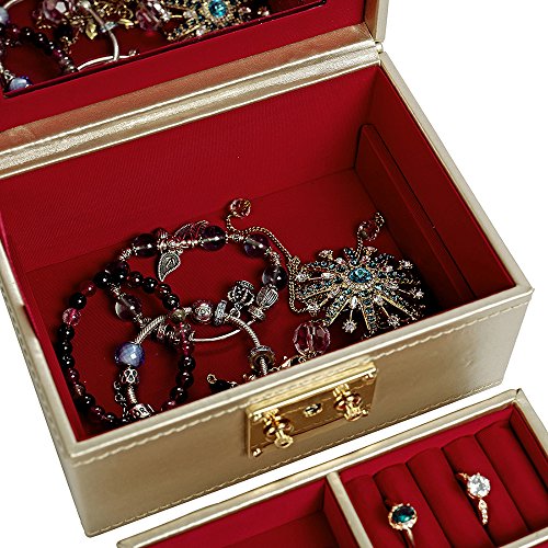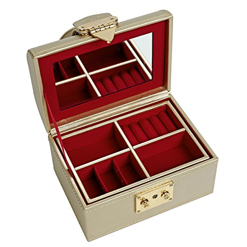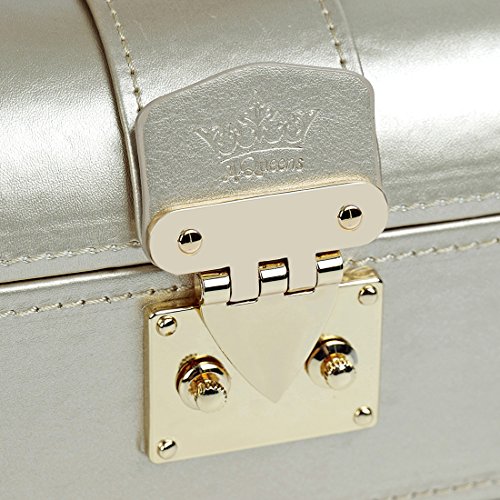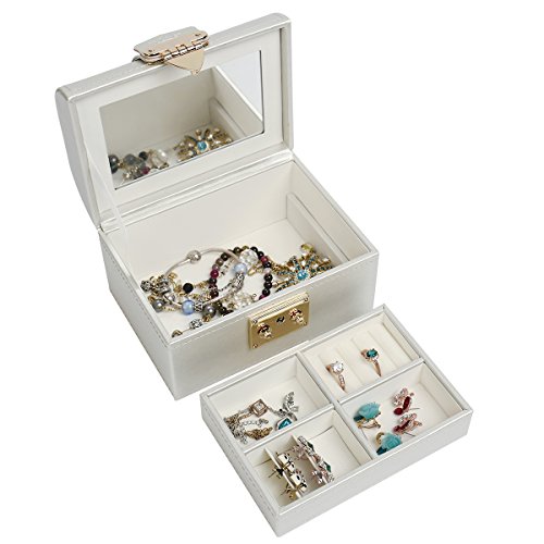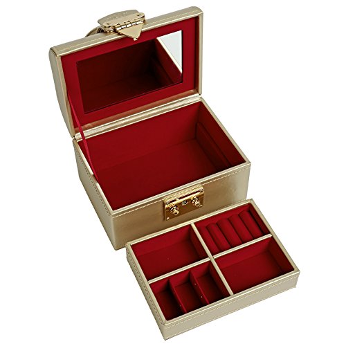 -. Title : 4Queens Handmade Girls travel Jewelry Box Pu Leather with Makeup Mirror Watch Display Organizer Storage Case Water Resistant Lining