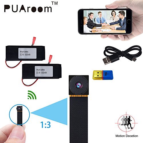 -. Feature : [1080P Mini Spy camera]: PUAroom is a Self-owned brand by PUAroom and has been registered successfully and we never authorize other Sellers to sell PUAroom products! If you have any Questions before or after Purchase it, Please Feel Free to Contact PUAroom. This Potable Mini Wifi P2P 1080P Spy Hidden Camera can make real time Audio & Video Recording / [WiFi Mini Spy Camera]: this MIni Potable WiFi Hidden Camera with 1080P, Support your PC Computer and Cell Phone Tablet APP Remote View and Control, it's secret for you Recording All the time you want, the happy time with your family, your classmates, your colleague; for your home security, your car security, Business Monitoring and also can be used as Hidden video recording, Car recorder, PC Camera, Meeting Recording, Video Surveillance, Baby Monitor / [Easy to Use]: Just Connect the Battery or Other Power, Then Start the Camera, and Download the APP (Android Phone search iMiniCam in Google Play; While Iphone Search imicam in App Store), Use Your Device to Connect the WIFI, and Find the Camera in the APP, then You Can Use it; Supports 32GB Micro SD Card in Max(SD Card Not Included ), You Also Can Set the Video to Reserve Your Device / [Loop Recording &Motion Detection]: When the Memory Card is Full, It Will Automatically Cover the Oldest Video Files; Recording and Charging at the Same Time So You don't Have to Worry About Running Out of Battery Life; You Also Can Setting the Motion Detection and it Will Record When There has Movable Body, If You don't Like That You can Close it. / [Package & Additional Bonus]: 1X Super Small WiFi Hidden Cam; 2X Batteries; 1X User Instruction; With 2 X 3000mAh Batteries in One Package, One More Than Other Sellers and Satisfy Your Needs, It is Convenience for You Potable it for a Long Time.