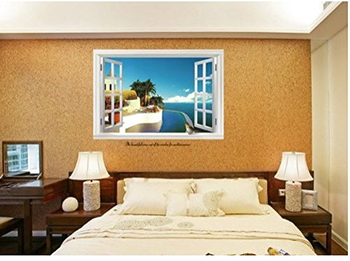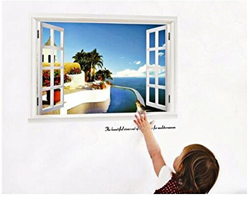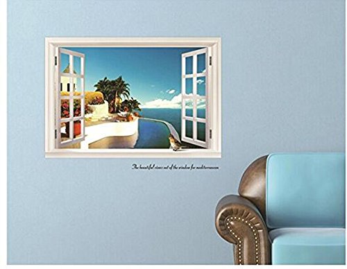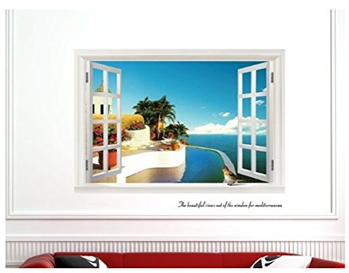 -. Title : 3D Blue Ocean Window Bird Wall Sticker Mural Decal for Living Room Bedroom Home Decoration