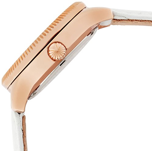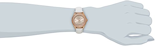 -. Feature : Round rose gold-tone watch featuring corrugated bezel with rhinestone inner ring, three-hand movement, sunray dial, and placed indices / 30 mm stainless steel case with mineral dial window / Japanese quartz movement with analog display / Genuine leather band with buckle closure / Water resistant to 50 m (165 ft): In general, suitable for short periods of recreational swimming, but not diving or snorkeling