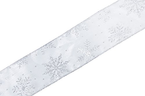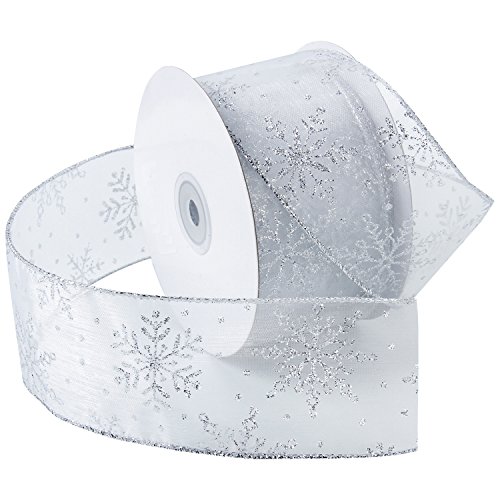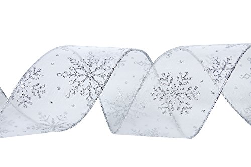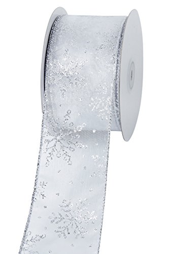 LaRibbons Snowflake Wired Sheer Glitter Ribbon, 2-1/2-Inch by 25-Yard Spool, White/Silver