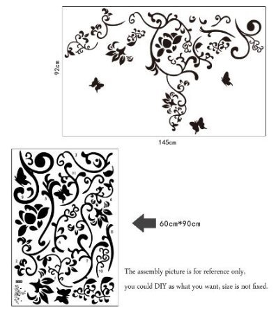 -. Title : Amaonm Black Removable Nursery Flowers Flower Vines Wall Decal Butterflies Home Art Decor Decorative Diy Wall Stickers Murals for Girls Kids Bedroom Living Room Playroom Offices TV Background