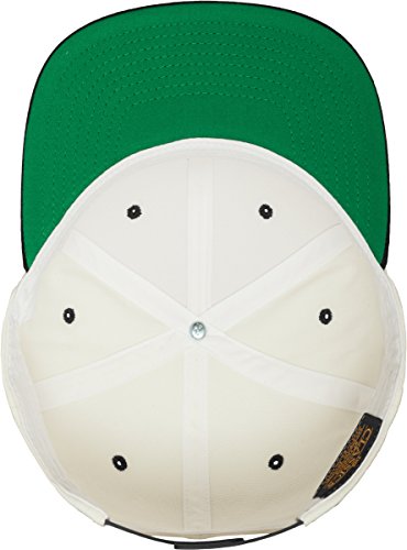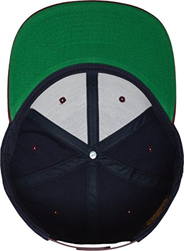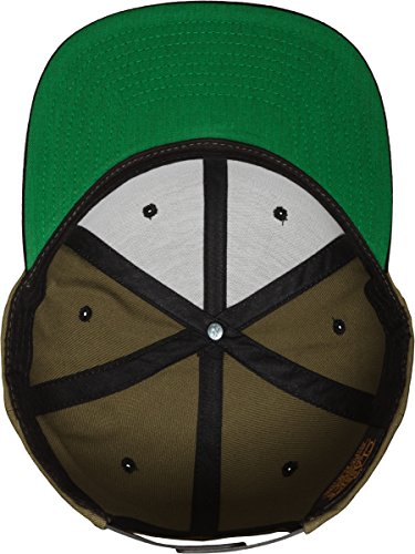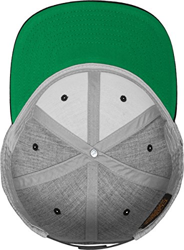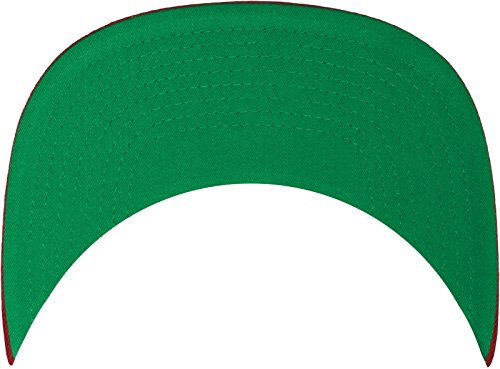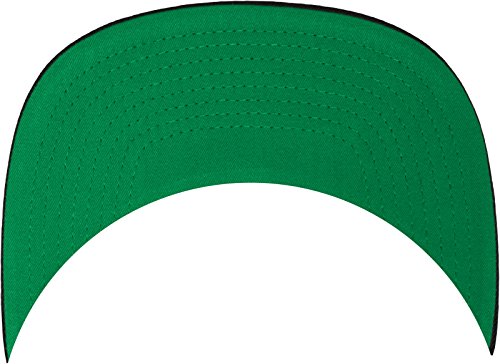 Der Schirm (Visor) ist auf der Unterseite Grun - ein Markenzeichen des Herstellers Yupoong Flexfit - die Oberseite ist in einer Kontrastfarbe zur Krone der Cap. Die Beluftungslocher und der Knopf haben die gleiche Farbe wie die Schirmoberseite