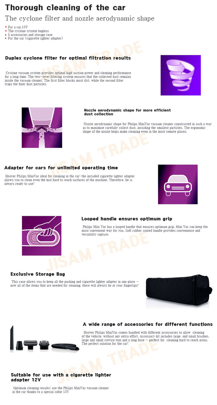 Philips FC6141/01 MiniVac Handheld vacuum cleaner 12 V Car Bagless Cyclonic & Simple User's Guide