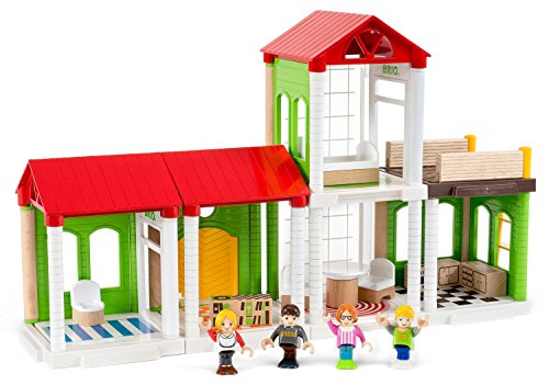 Welcome to the BRIO Family Home, a modular play house. Build it according to suggestions in the leaflet or customize - the modular pieces in plastic and wood offer lots of options. It comes with interior details and characters, creating a unique social play focus around real life situations for your child to engage in. Village is a NEW theme within the BRIO World concept – filled with play values and experience. The Village encourages social roleplay and invites children to play together by telling stories from their everyday life. The Village theme consists of several modular toys like a house, school, singing stage and ice cream stand. This theme offers suggestions but encourages children to create their own settings. A variety of different characters help to get the roleplaying started. All pieces of the Village theme are modular-scaled to fit the rest of the BRIO World and can easily be connected and expanded with the other themes in the BRIO World. BRIO creates innovative, high-quality and well-designed toys with clean, simple designs that spark children's creativity and imagination while encouraging and supporting each stage of their development. For over a century, our mission has been to create happy childhood memories. All wooden parts are made from 100% FSC-certified beech wood from sustainably managed forests and are built to last for generations.Feature