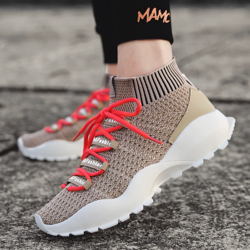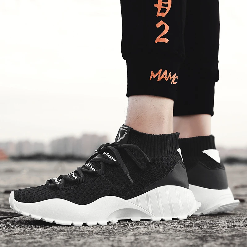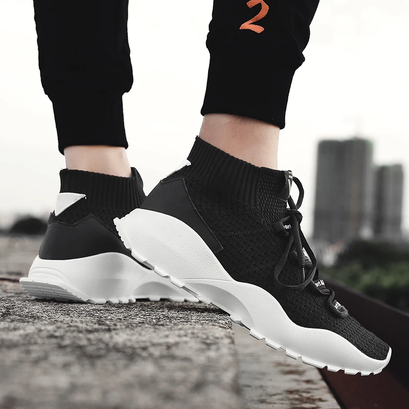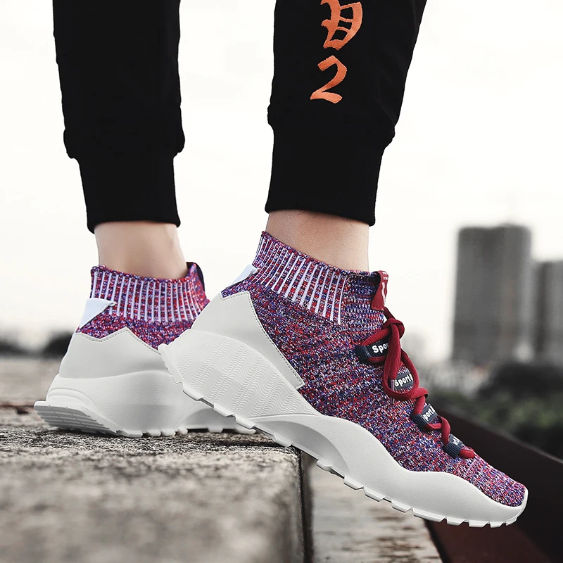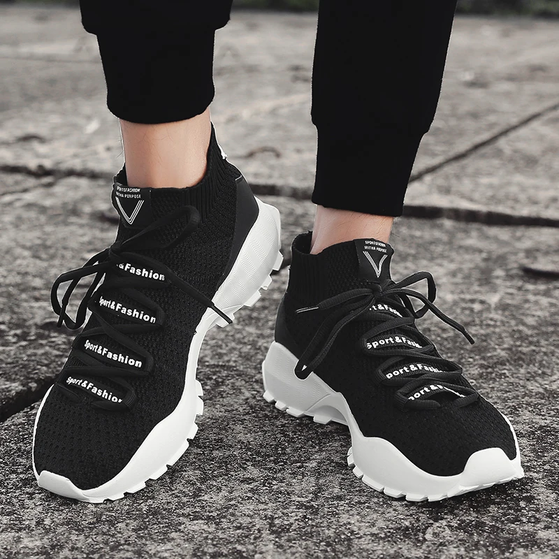 Increasing Height Trainers:Men Fly Weave Sock Shoes