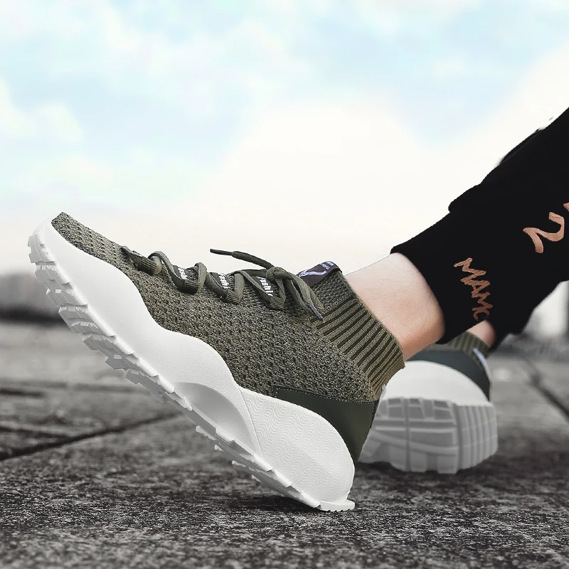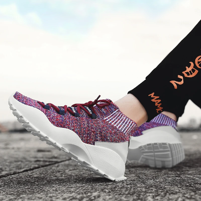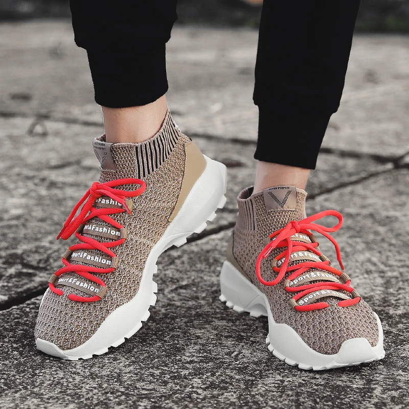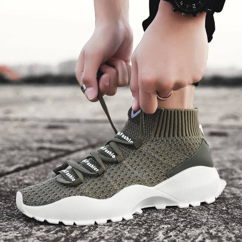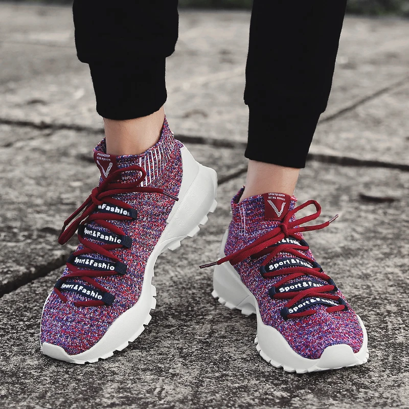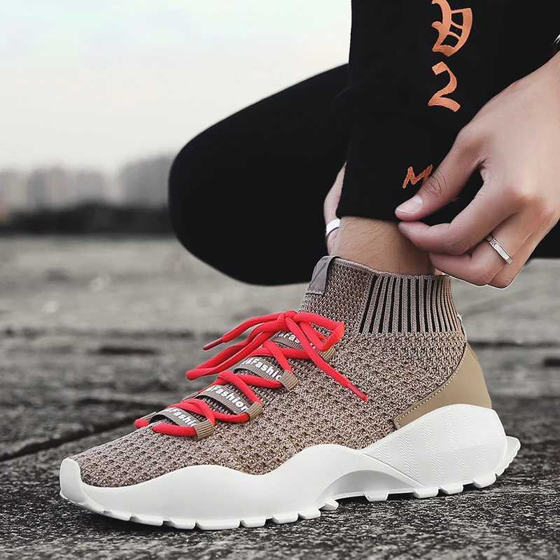 Increasing Height Trainers:Men Fly Weave Sock Shoes