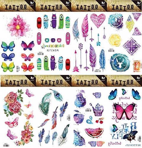 GGSELL GGSELL 8pcs different temporary tattoos designs in one package, it including colorful flowers,roses,butterflies,feather and Geometry tattoo stickers