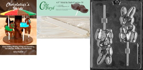 Cybrtrayd 'Grabby Bunny Lolly' Adult Chocolate Candy Mold with 50 4.5-Inch Lollipop Sticks and Chocolatier's Guide