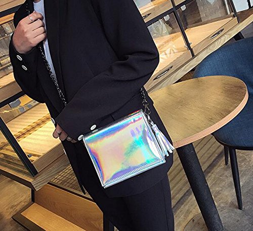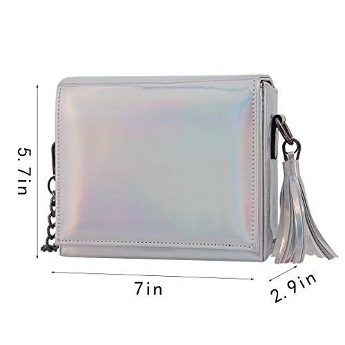 Candice Women Shiny Hologram Holographic Tassel Handbag Shoulder Bag Crossbody Bag Purse