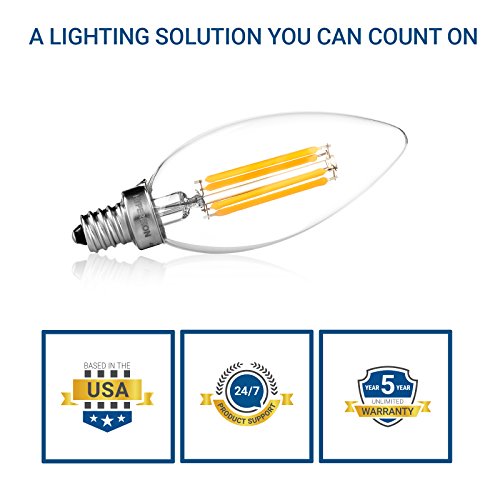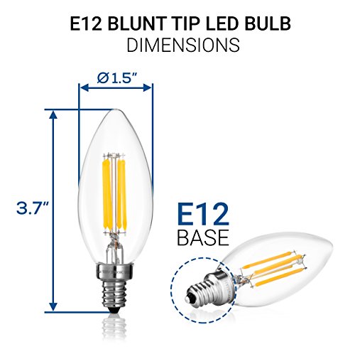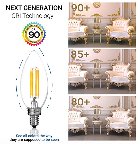 Hyperikon LED Edison Filament B11 Candle 4W (40W Equivalent), Dimmable, Blunt Tip, Small Base (E12), CRI 90+, 3000K (Soft White Glow), - (Pack of 6)