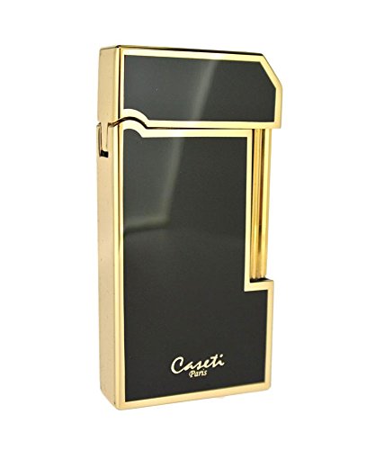 - Candle flame black lacquer and gold plated finish butane viewable window