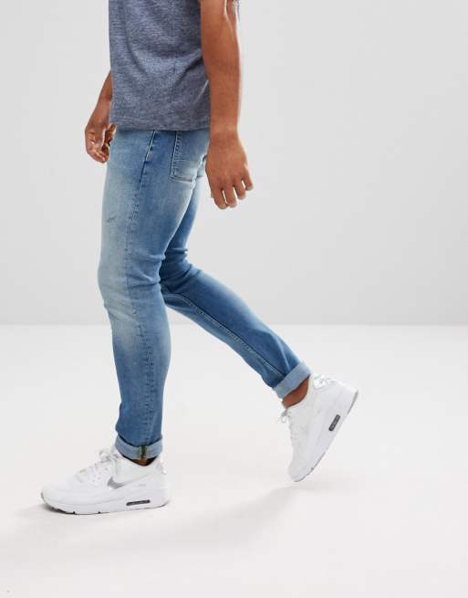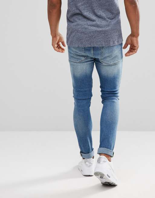 ASOS Extreme Super Skinny Jeans In Mid Wash Vintage With Abrasions