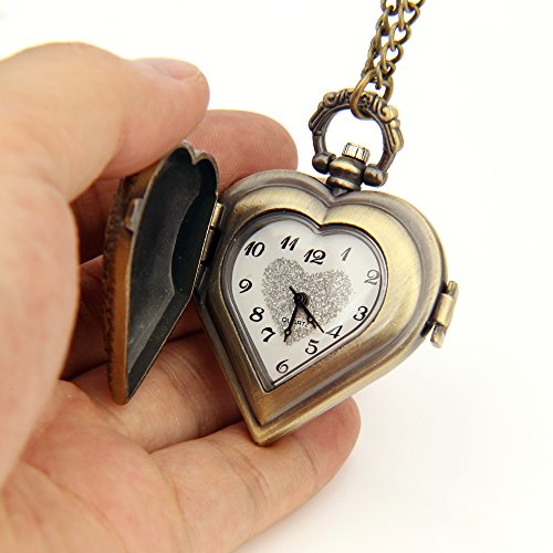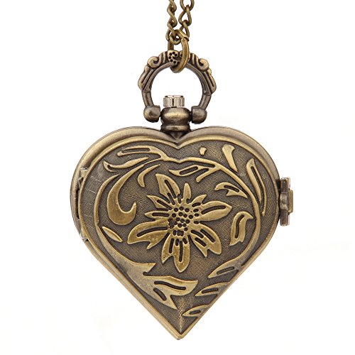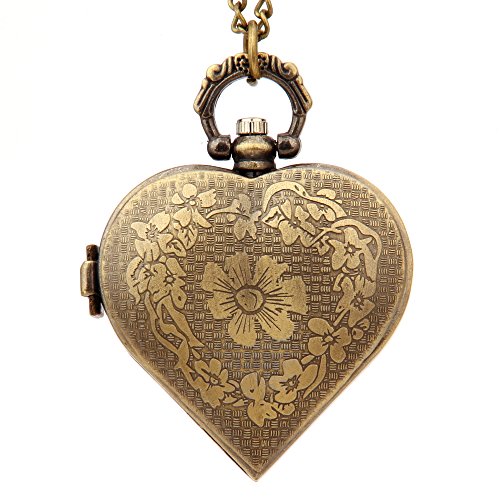 -. Title : YouYouPifa Carved Flower Pattern Design Heart Shaped Pocket Watch