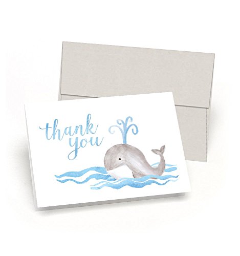 Whale Thank You! Baby Shower Thank You Cards (Set of 10 Cards + Envelopes) - Watercolor Baby Whale - By Palmer Street Press (Blue)